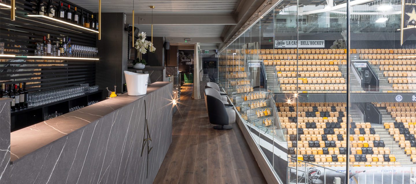 Su incarico dell’Hockey Club Lugano, Inarchi ha progettato e realizzato una lounge esclusiva all’interno della Corner Arena, uno spazio pensato per offrire agli ospiti una vista privilegiata sulla pista, un ambiente raffinato per la cena e un’area conviviale